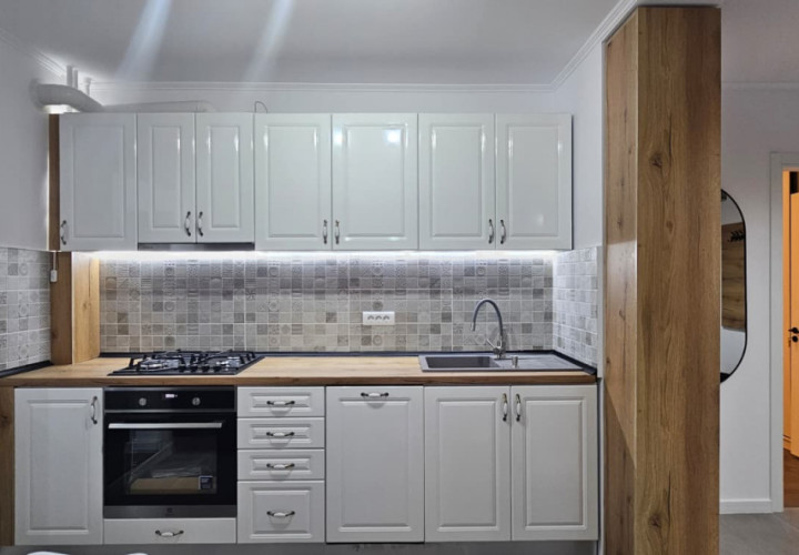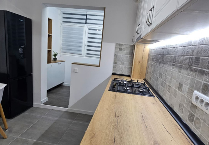 Apartament semidecomandat cu 3 camere, renovat complet în 2025, cu instalații sanitare și electrice noi. Se vinde complet mobilat și utilat, cu electrocasnice premium noi.