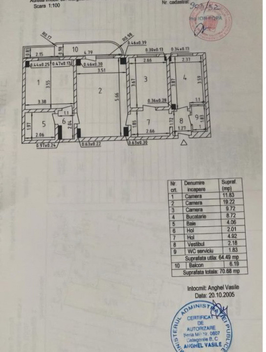Vând apartament de 3 camere, semidecomandat, 71 mp, situat la etajul 8 din 10 într-un bloc izolat termic (1984), pe Str. Margeanului colț cu Buzoieni.